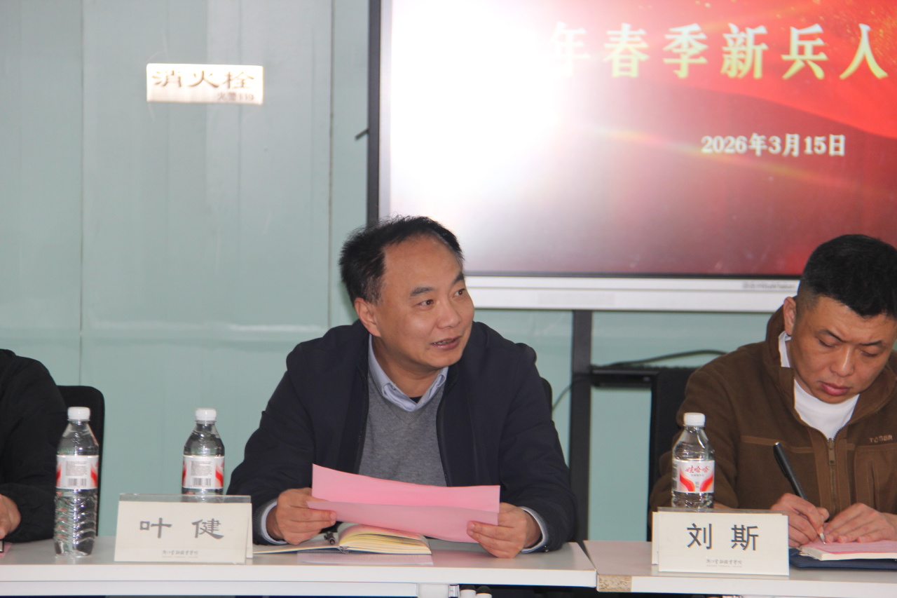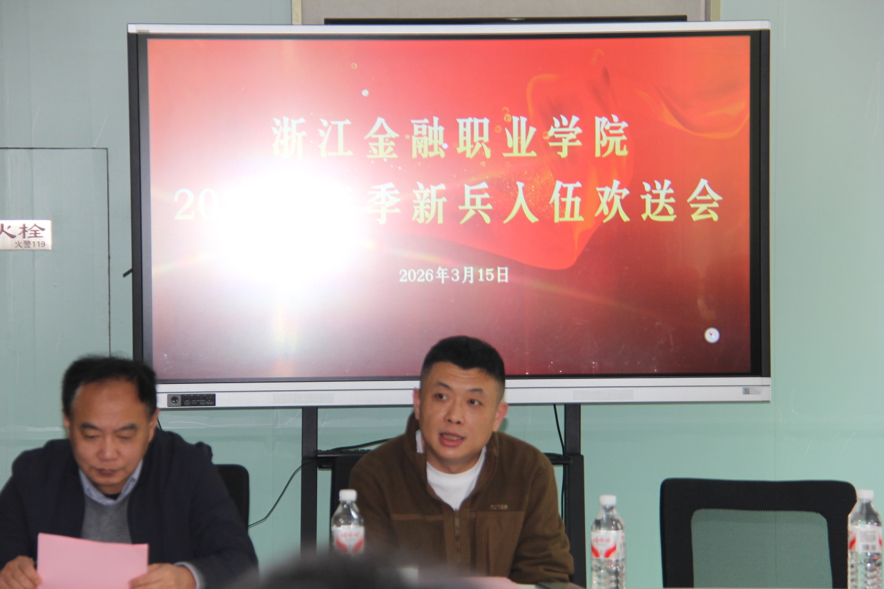 3月15日,我校在浙商发展中心一楼会议室隆重举行2026年春季新兵入伍欢送会。学校安全保卫部部长、人武部部长叶健老师,安全保卫部副部长、人武部副部长刘斯老师,人武部杨成江老师,人武部陈庄老师,相关学院辅导员,本次批准入伍的新兵及家长代表出席。