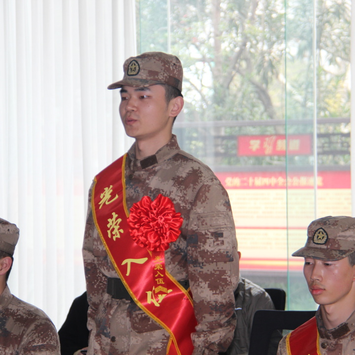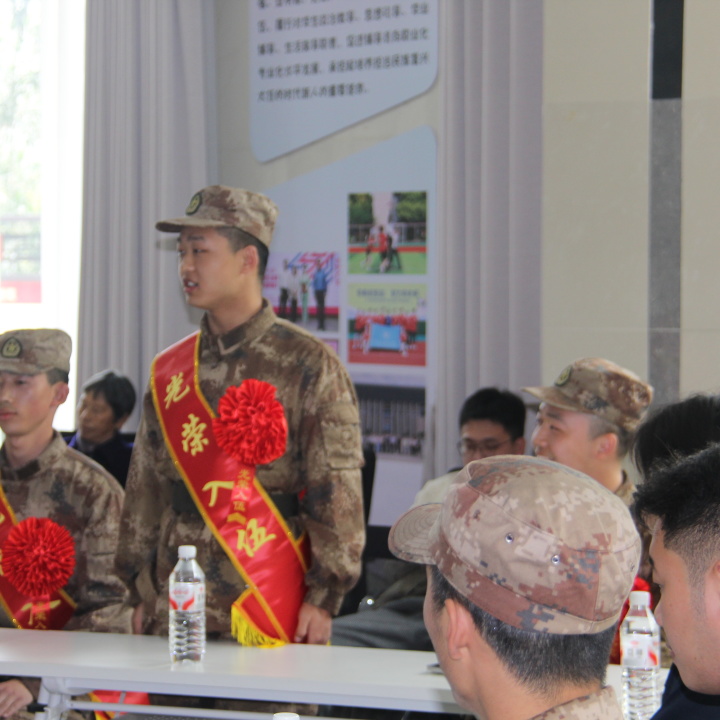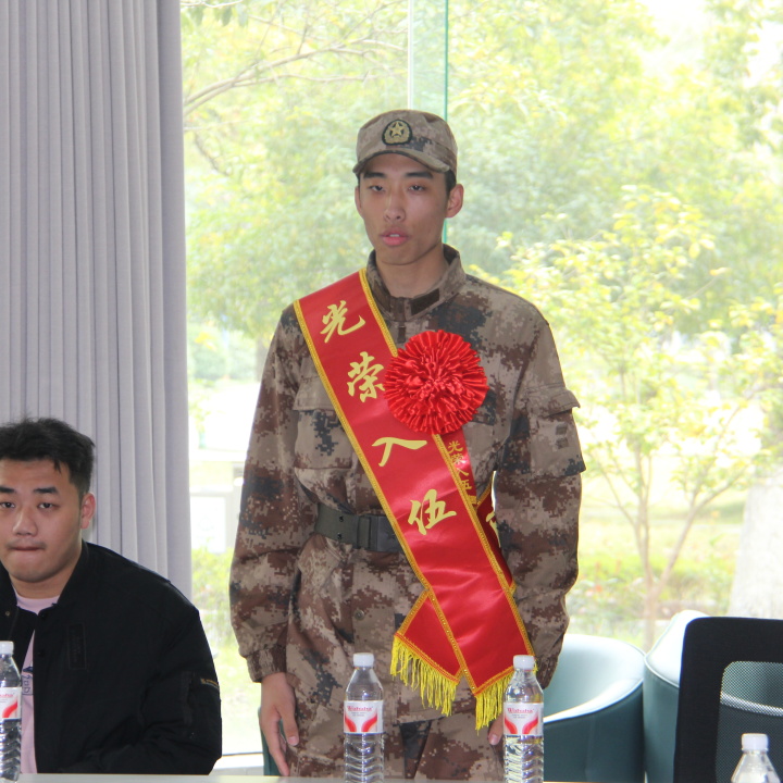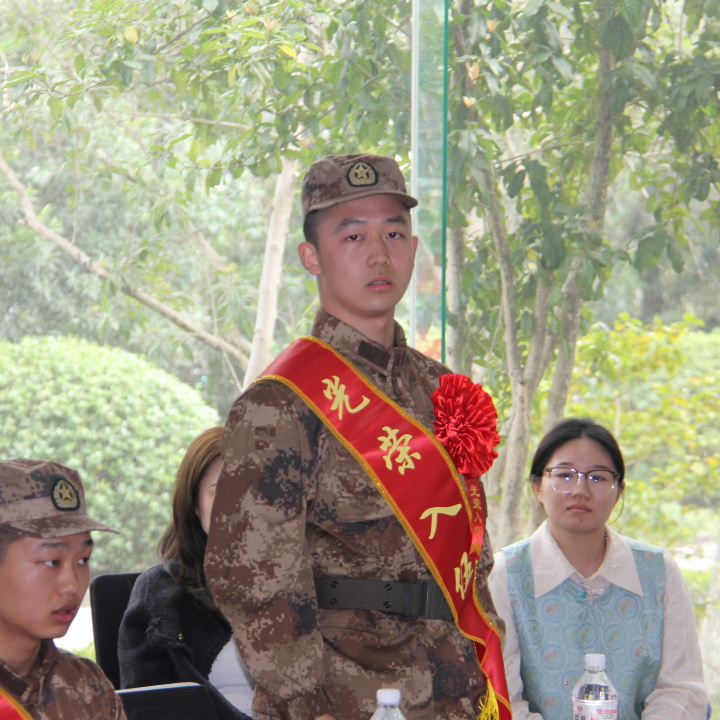 首先是入伍新兵发言,身着崭新戎装的学子们,脸上还带着青春的青涩,眼神却已充满坚毅与担当。他们是刚放下书本的学生,是即将踏入军营的新兵,是钢铁长城中兼具学识与热血的新力量。或许昨天还在图书馆里埋首苦读,今天就已换上笔挺的戎装;或许方才还在和同窗嬉笑打闹,此刻眼神里便多了一份沉甸甸的责任。他们带着校园里的书卷气,揣着心底的家国梦,要在军营的淬炼中,把自己锻造成守护山河的坚实屏障。